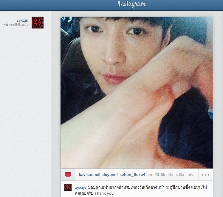 [EXO]ปริ่มเว่อร์!!อาอี้อัพไอจีขอบคุณแฟนไทย