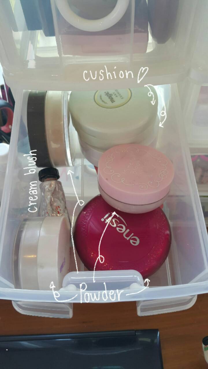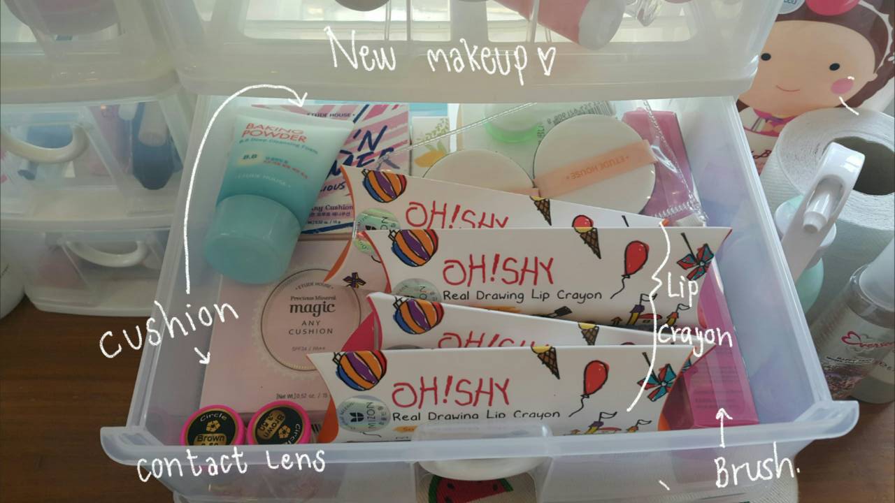 ชั้นที่3 เป็นพวกเครื่องสำอางที่เราซื้อมาตุนๆๆและยังไม่ได้เปิดใช้นั่นเอง ก็จะมีพวกลิป bb cushion แปรงต่างๆงับบ