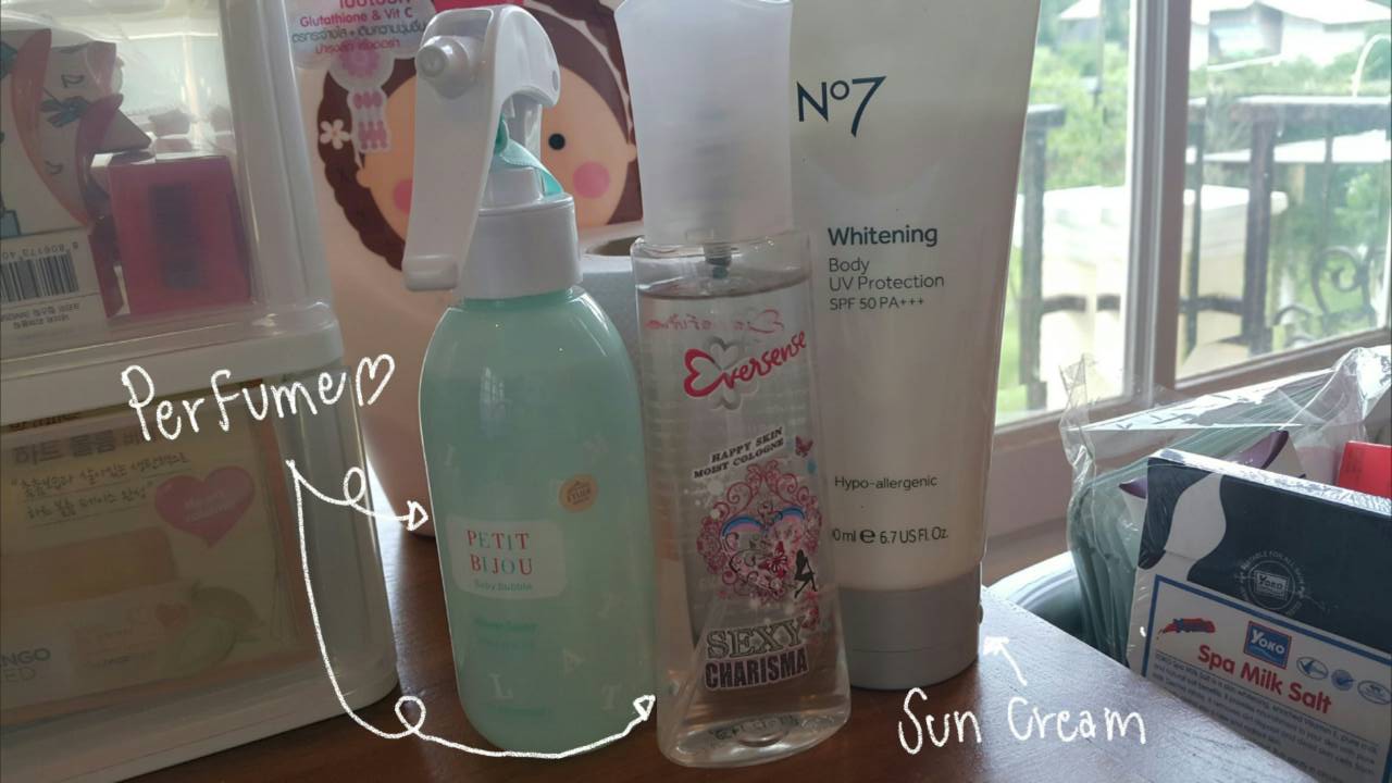 ต่อไปข้างๆก็จะมีน้ำหอม ครีมกันแดดและครีมทาผิวเย้