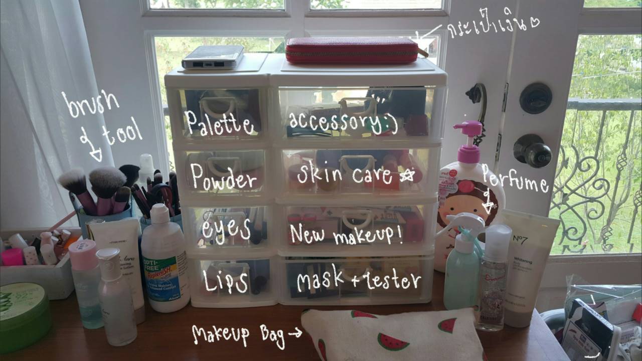 เรามาดูโซนแรกกันดีกว่าค่ะ โซนนี้ก็จะเป็นที่เก็บเครื่องสำอางของเรา เย้