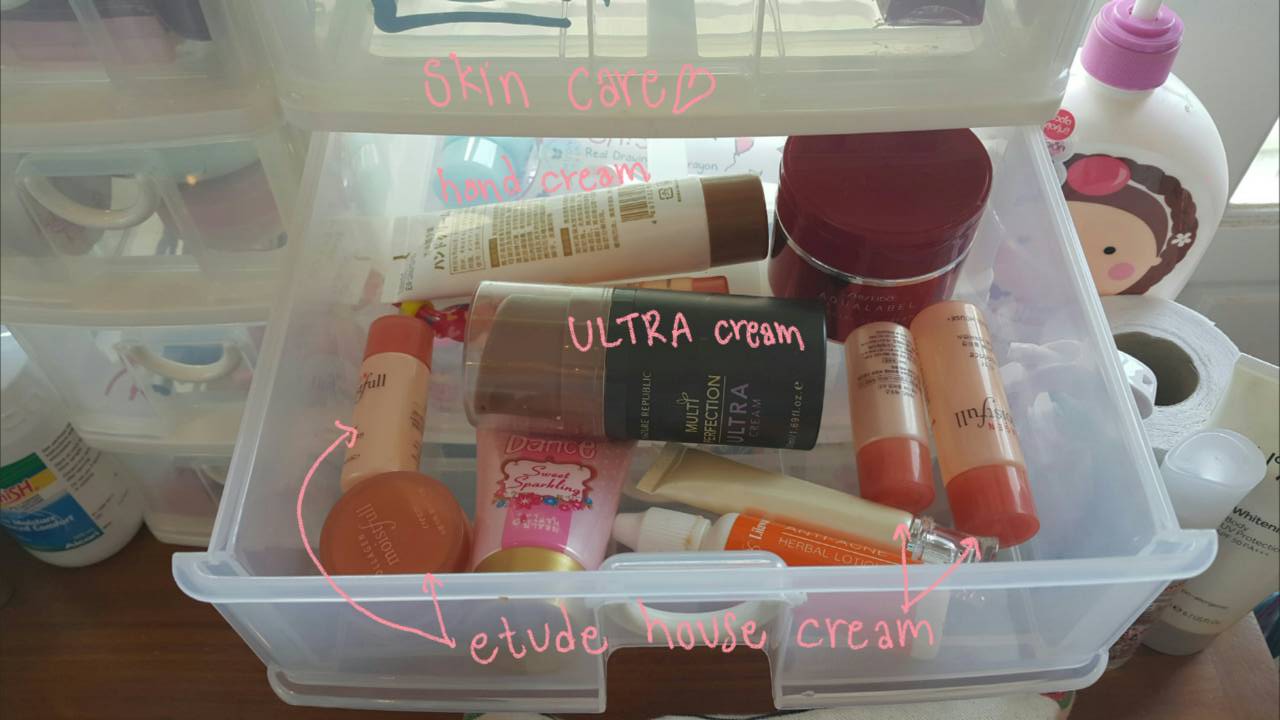 จะเป็นพวกที่เกี่ยวกับหน้าทั้งหมดค่ะ เช่น cc cream, bb cream, makeup base, sun cream จ้าา (ส่วนใหญ่จะเป็นของ etude house 555555555 คือเราบ้าแบรนนี้มากแบบจริงจัง เจอที่ไหนเป็นต้องแวะ555555)