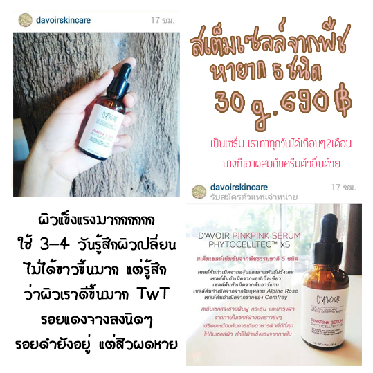 รู้แต่ว่าสารสกัดมันเยอะดี ..... เป็นไอเทมปัจจุบันล่าสุดที่เพิ่งหมดไป เพิ่งซื้อไปตอนกลางๆเดือน พ.ค. มั้งใช้มาเกือบๆ 2 เดือน ชอบมาก อ่านมาจากจีบัน มีคนบอกว่าใช้คู่กับโรสฮิปออยล์ของ skinplants (อีกยี่ห้อนึง) แต่เค้างบไม่พอ เลยขอแบรนด์นี้แบรนด์เดียวก่อน 55 ใช้แล้วผลที่ได้ : ผิวเนียนละเอียดขึ้นมาก ใช้ 3-4วันแรกรู้สึกว่าผิวเปลี่ยนไปอ่ะ คือมันรู้สึกได้จริงๆ (ไม่ได้เปลี่ยนแบบขาวกระจายนะ) แต่คือผิวมันแข็งแรง บอกไม่ถูกหว่ ะ 5555 รอยแดงจางลง แต่รอยดำยังอยู่ รอยดำอยู่ไม่เป็นไร แต่สิวผดค่อยๆแห้งหายไป คือปลื้มมาก ตอนนี้กำลังจะซื้อมาร์คมิ้วมาใช้คู่กัน อ่านเม้นท์มีคนบอกว่าใช้คู่กันละดี ซื้อที่ : D'avoir Skincare