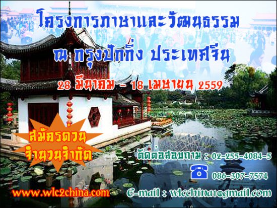 โครงการภาษาและวัฒนธรรม ณ กรุงปักกิ่ง ประเทศจีน วันที่ 28 มีนาคม - 18 เมษายน 2559 เรียนและเที่ยว 2in1