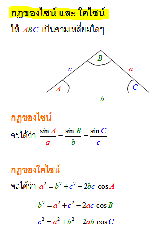 ▬ สูตรกฎของโคไซน์ และกฎของไซน์