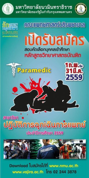 รับสมัครสอบคัดเลือกบุคคล เพื่อเข้าศึกษาหลักสูตรวิทยาศาสตรบัณฑิต สาขาปฏิบัติการฉุกเฉินการแพทย์ ( PARAMEDIC )