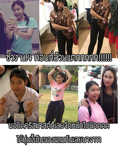 เดย์ใช้เวลาในการทานอาหารเสริมลดน้ำหนักอยู่3เดือนค่ะ ช่วงต้นม.6ก็มิถุนา-กันยา เพื่อให้ร่างกายปรับสมดุลและอยู่ตัว หลังจากนั้นจึงใช้วิธีการควบคุมอาหาร+ออกกำลังกายล้วนๆค่ะ ช่วงแรกๆออกมันทุกวันเลยค่ะ เล็กๆน้อยๆเบาๆ ไม่ได้ออกกำลังกายหนักๆเนอะ