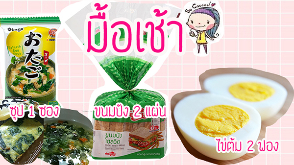 อันนี้เลือกทานตามมีตามเกิดค่ะ555555 เพราะอยู่หอเนอะ สามารถปรับเปลี่ยนจากขนมปังเป็นข้าวได้ค่ะ หรือจะเพิ่มจำนวนไข้ต้มจาก2ฟองเป็น3ฟองก็ได้นะคะสำหรับคนกินเยอะและอยู่ในช่วงปรับตัวหรือจะ2ฟองและอีก2ฟองกินเฉพาะไข่ขาวก็ได้ค่าา
