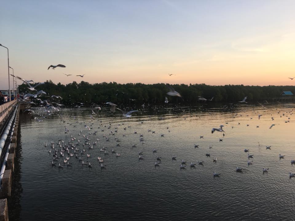 กิจกรรมที่ไม่ควรพลาดเมื่อมาเที่ยวบางปูก็คือ การให้อาหารและถ่ายรูปคู่กับฝูงนกนางนวล ที่สะพานสุขตา สะพานปูนที่ยื่นยาวออกไปกลางทะเล โดยช่วงเวลาที่เหมาะแก่การมาชมฝูงนกนางนวลคือ เดือนตุลาคม-กุมภาพันธ์ ซึ่งการให้อาหารนกไม่ควรให้จากมือนะคะ แต่ควรใช้วิธีโยนให้นกโฉบกินกลางอากาศแทน