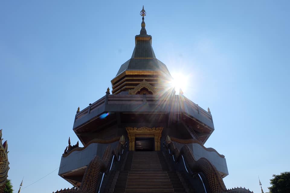 เกี่ยวกับการธุดงค์ของหลวงปู่มั่น ภูริทัตโต ด้วย ชั้นบนสุด เป็นที่ประดิษฐานของพระบรมสารีริกธาตุ