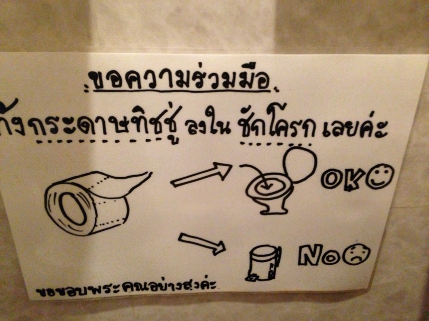 การเข้าห้องน้ำที่นี่ หลังจากใช้ทิชชู่เสร็จแล้วให้ทิ้งลงชักโครกแล้วกดได้เลยไม่ต้องกลัวตัน