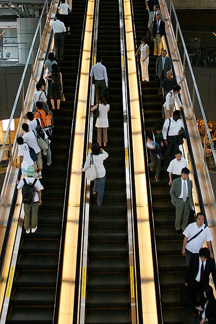 บันไดเลื่อนที่ญี่ปุ่นถ้าจะยืนปกติก็ชิดซ้าย ยกเว้นคันไซจะชิดขวา ส่วนอีกด้านจะเว้นไว้ให้คนที่รีบเดินขึ้นไป