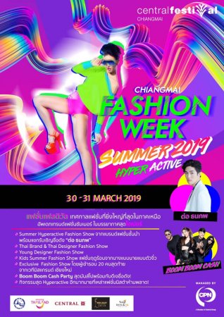 ศูนย์การค้าเซ็นทรัลเฟสติวัล เชียงใหม่ จัดกิจกรรมรับฤดูร้อนในงาน "Chiangmai Fashion Week/Summer 2019 Hyperactive" ระหว่างวันที่ 30-31 มีนาคม 2562 เวลา 17.00 น. ณ ลานหน้าศูนย์การค้าเซ็นทรัลเฟสติวัล เชียงใหม่ กับเทศกาลแฟชั่นสุดยิ่งใหญ่ในภาคเหนือ ตื่นตาตื่นใจกับเหล่านายแบบนางแบบ พร้อมแขกรับเชิญพิเศษ "ต่อ - ธนภพ ลีรัตนขจร" และสนุกสนานกับคอนเสิร์ตจาก "บูม บูม แคช" (Boom Boom Cash)