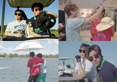 พอวอล์กอินเดินกางร่มเข้ามาในสนามกอล์ฟด้วยกัน พอเห็นบ่อน้ำ 2 หนุ่มก็เริ่มแหย่แกล้งถามอีกฝ่ายแล้วว่าชอบเล่นน้ำหนิ