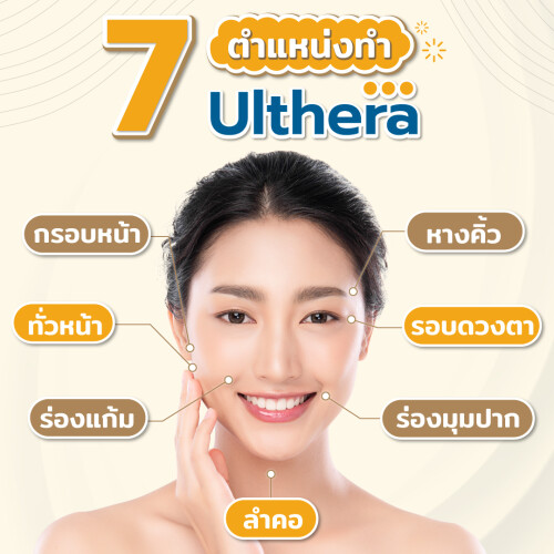 Ultheraคือเทคโนโลยีกระชับผิวหน้าด้วยคลื่นอัลตร้าซาวด์แบบโฟกัสความเข้มข้นสูง (High Intensity Focused Ultrasound) โดยไม่ต้องผ่าตัด ไม่มีแผล และไม่ต้องพักฟื้น