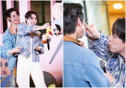 แล้วทั้งคู่ยังได้มาแปะแป้งให้แฟนๆ กันอีก แต่จะมีอยู่คนนึงแทบจะทนไม่ไหวที่จะหุบมือไม่ให้ปะแป้งเด็กอ้วน😌