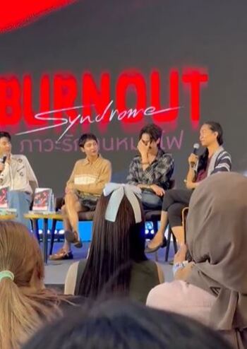 เขาก็ได้แวบไปพูดคุยในฐานะนักแสดงนำจาก Burnout Syndrome ภาวะรักคนหมดไฟ ด้วย