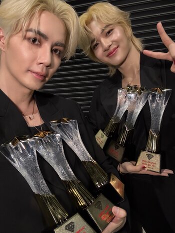 หัวทองคู่เป็นลุคที่ continue มาจากงานคอนเสิร์ตที่เข้ากับทั้งคู่มากก 💫