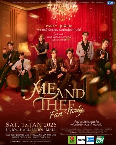 ชมซีรีส์ตอนจบไปด้วยกันใน Me and Thee Fan Party วันที่ 17 มกราคม 2569 เวลา 19.00 น. ณ ยูเนี่ยน ฮอลล์ ศูนย์การค้ายูเนี่ยน มอลล์ และสนุกสุดเหวี่ยงไปด้วยกันกับการแสดงแทนช่วงการรับชมซีรีส์ตอนจบร่วมกันใน Me and Thee After Party วันที่ 18 มกราคม 2569 เวลา 19.00 น. ณ ยูเนี่ยน ฮอลล์ ศูนย์การค้ายูเนี่ยน มอลล์ แฟนๆ จากทั่วโลกสามารถรับชมแบบ Live Streaming ผ่านทาง TTM Live