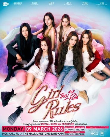 ลุ้นไปกับสมรภูมิความรักและหน้าที่ในซีรีส์ "Girl Rules กฎหลัก...ห้ามรักเธอ" การประชันบทบาทสุดแซ่บของ 6 นักแสดง "น้ำตาล - ทิพนารี วีรวัฒโนดม" "ฟิล์ม - รชานันท์ มหาวรรณ์" "มิ้ลค์ - พรรษา วอสเบียน" "เลิฟ - ภัทรานิษฐ์ ลิ้มปติยากร" "วิว - เบญญาภา จีนประสม" และ "มิ้ม - รัตนวดี วงค์ทอง" ที่จะมาสาดเสน่ห์ในงาน "Girl Rules : The 1st Rule"