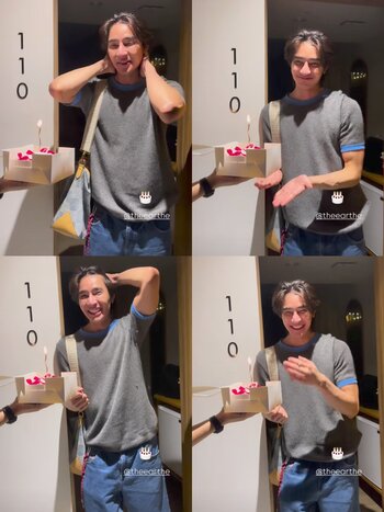 และวันเกิดย้อนหลังปีนี้คุณเขาได้เป่าเค้ก 2 ก้อนแหละ ก้อนแรกเป็นจากครอบครัว
