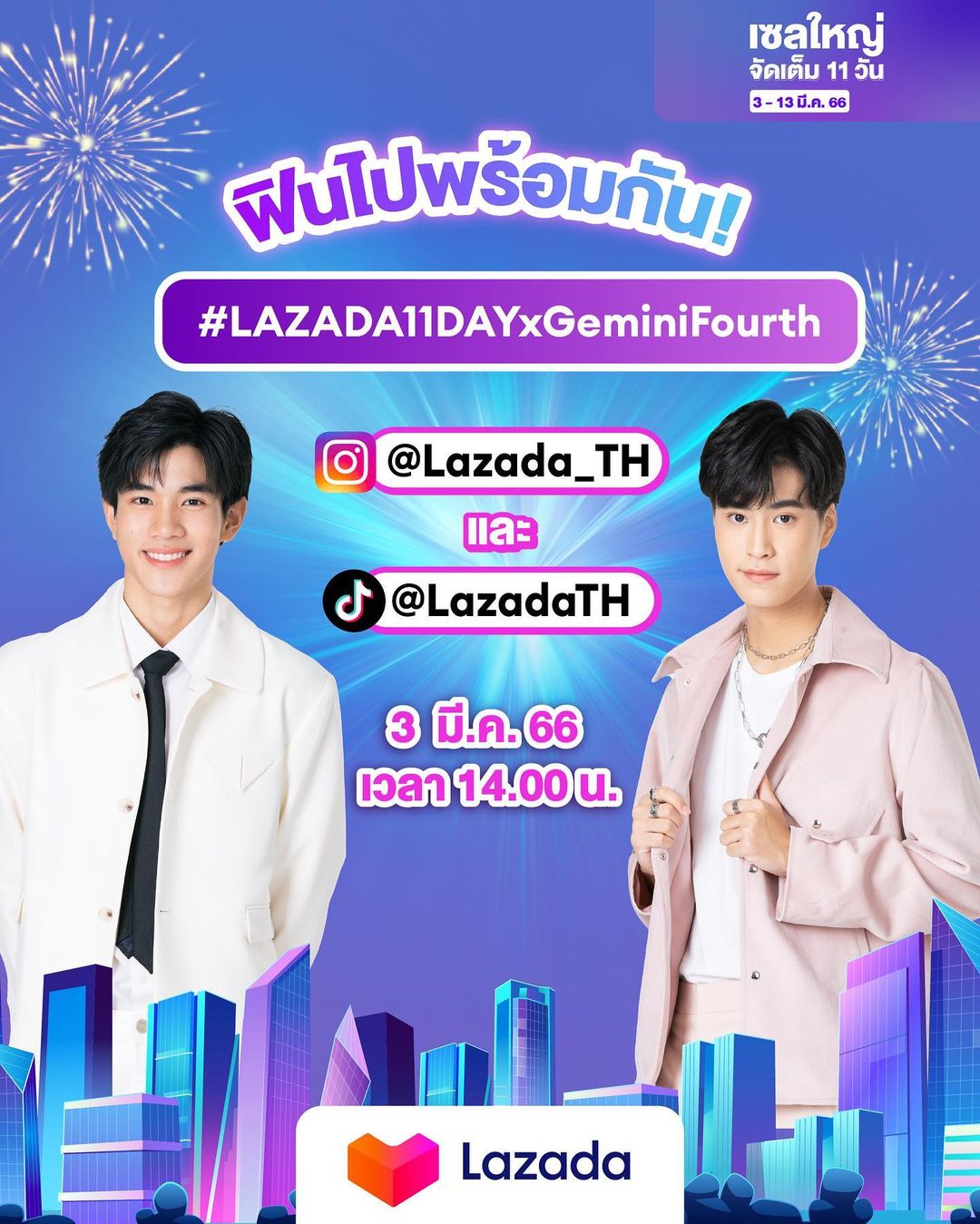 🔥 กดติดตาม @Lazada_TH เอาไว้เลย แล้วมาสนุกพวกเรากัน! และอย่าลืมติด #LAZADA11DAYxGeminiFourth กันด้วยน้า เอาให้ติดเทรนด์อันดับ 1 เลย🥰