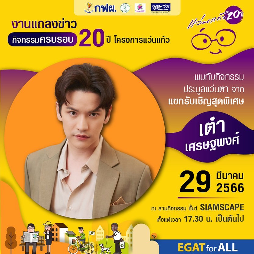 การไฟฟ้าฝ่ายผลิตแห่งประเทศไทย (กฟผ.) จัดงานแถลงข่าวกิจกรรมครบรอบ 20 ปี โครงการแว่นแก้ว "Better View Better World" ขอเชิญชวนทุกท่านมาร่วมประมูลแว่นตาจากศิลปิน ดารา อาทิ อิน สาริน, เต๋า เศรษฐพงศ์ และรับชมมินิคอนเสิร์ตจากทอม อิศรา