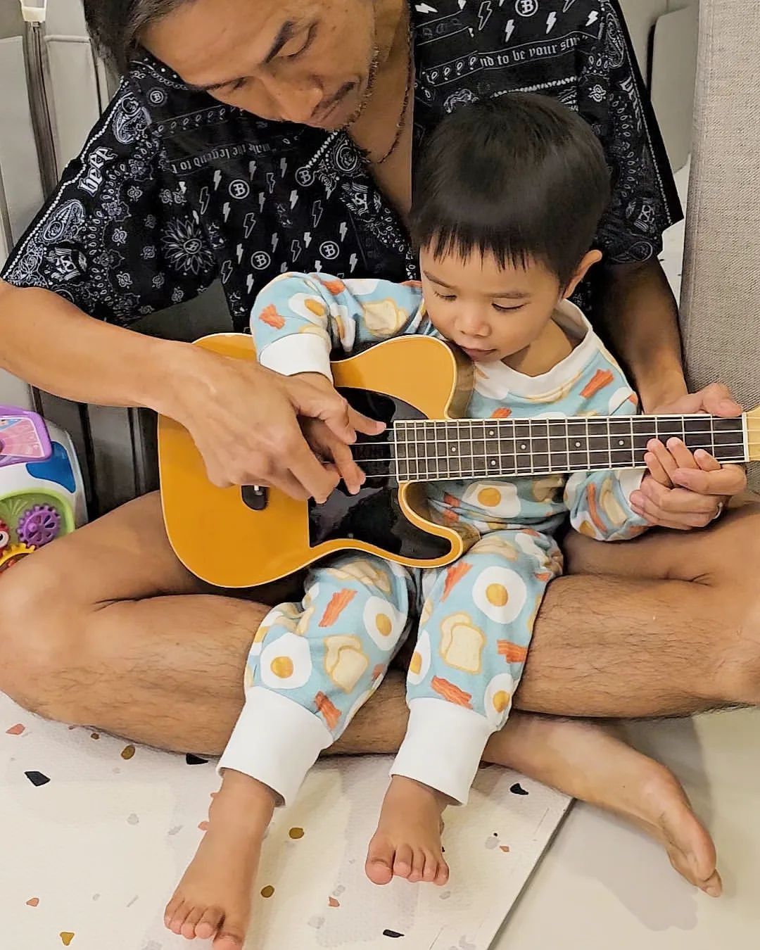ก่อนนอน...เดินไปที่เปียโนแล้วชี้ไปที่อูคูเลเล่ที่วางอยู่บนเปียโนอีกที...แล้วส่งเสียง "เล่ๆ" เหมือนอยากจะให้พ่อช่วยสอน🎶🎸😇
