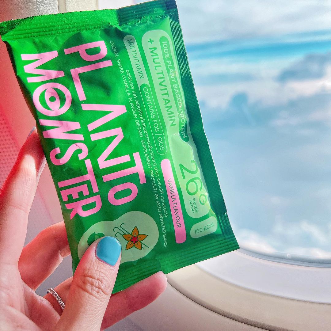 ไม่ว่าจะไปไหน มี่จะพกโปรตีนไปด้วยเสมอ Planto Monster โปรตีนที่ทำจากพืช 1 กล่องมี 12 ซอง 1 ซอง มีโปรตีน 26 กรัม ซองสีสวย พกพาสะดวกค่ะ :))