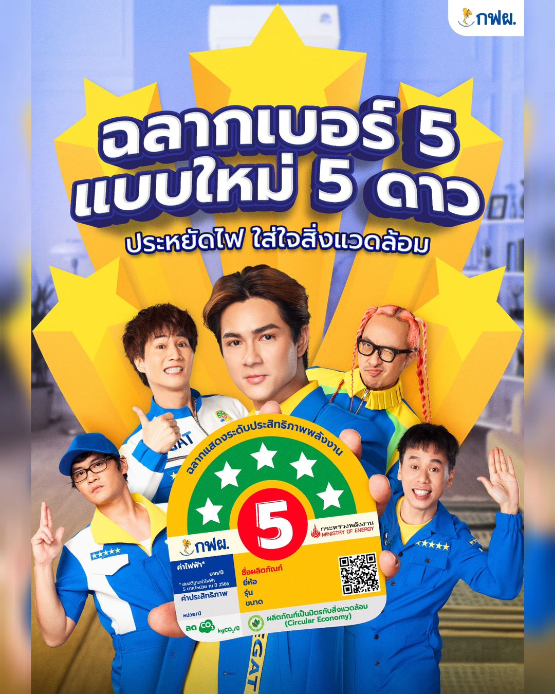 ผมอยากบอกว่า ตอนนี้ กฟผ. ได้ปล่อยฉลากเบอร์ 5 แบบใหม่ออกมาเพื่อช่วยให้ทุกคนได้เซฟค่าไฟ และประหยัดพลังงานไปพร้อมกัน
