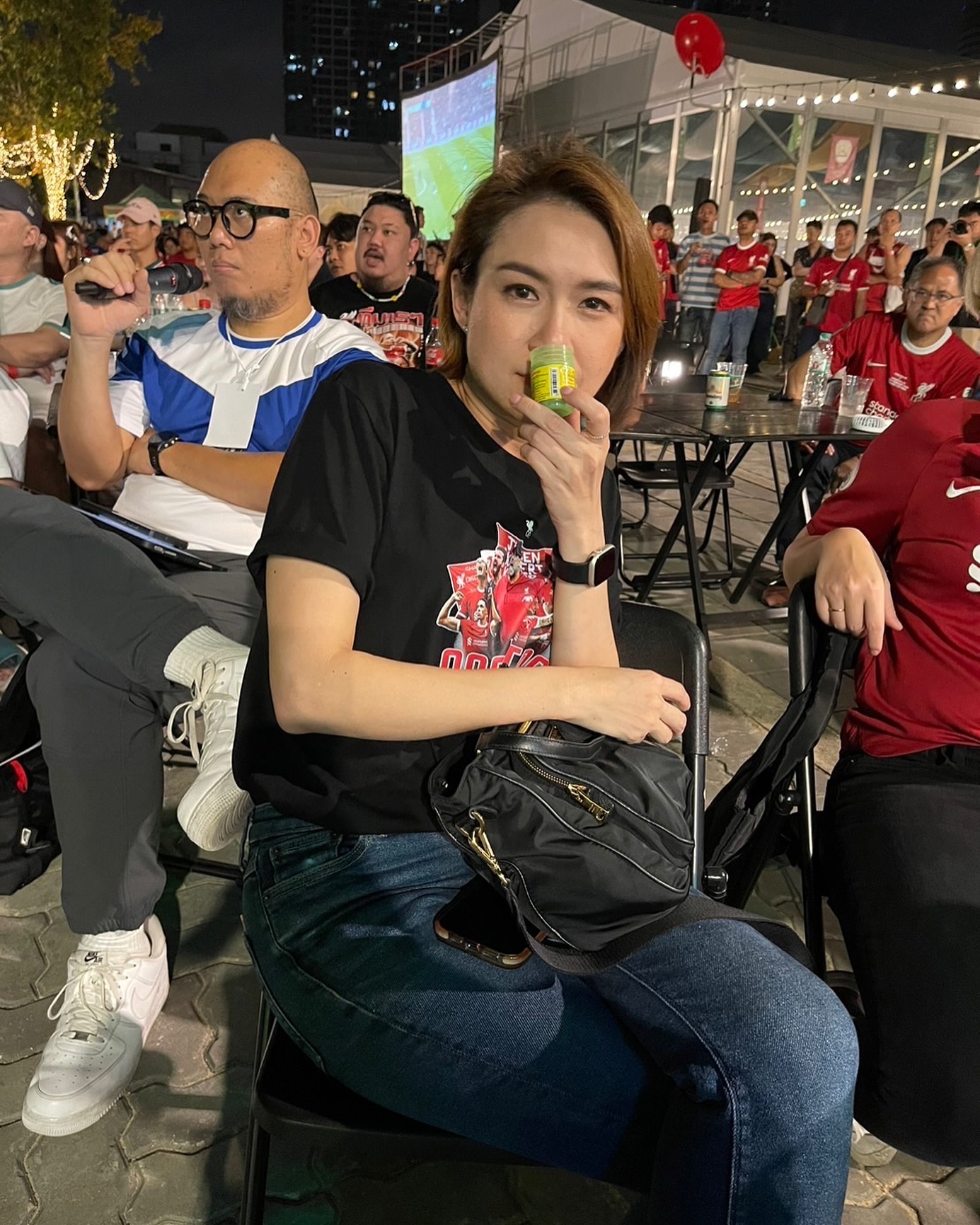สภาพเมื่อคืนนี้ พักครึ่งไปเปลี่ยนเสื้อด้วยนะ เผื่อดวงเปลี่ยน 😂 พอชนะ กลับบ้านตาค้าง นอนไม่ได้อีก นอนตีสี่ ตื่นแปดโมงแล้วมาทำงาน เจอกันใน Sport Cornerค่ะ 🙌🏻❤️🏆☺️