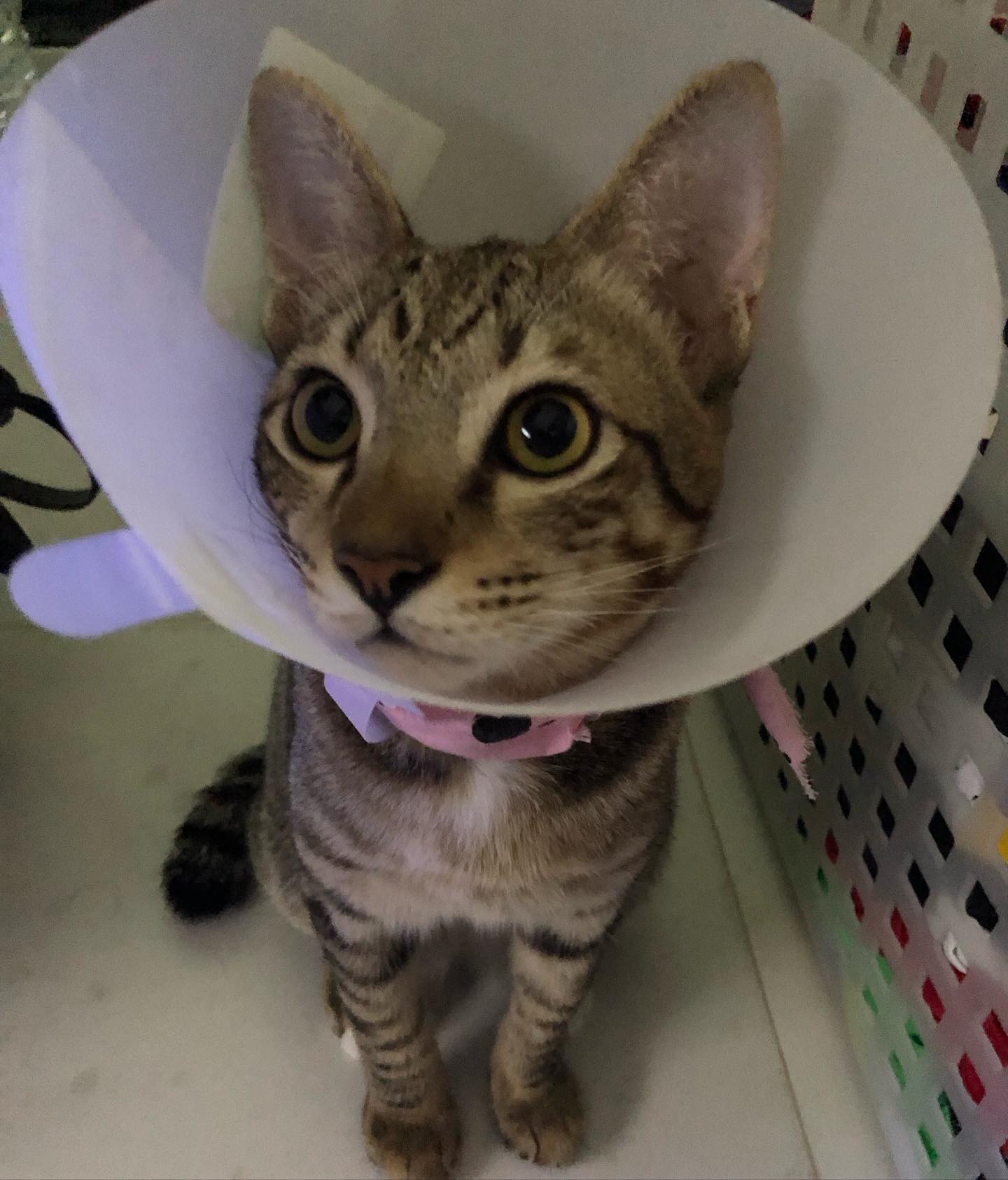 ใส่มาหลายวันละ สงสารจริงๆ เดินชนโน้นนี่ วันนี้จะเอาไปหาหมอ น่าจะถอดแล้วล่ะ ดีใจกับซีฟู้ดด้วยนะ อดทนมากๆเลยนะ สู้ๆ เจ้าแมวอ้วน #บั้ก