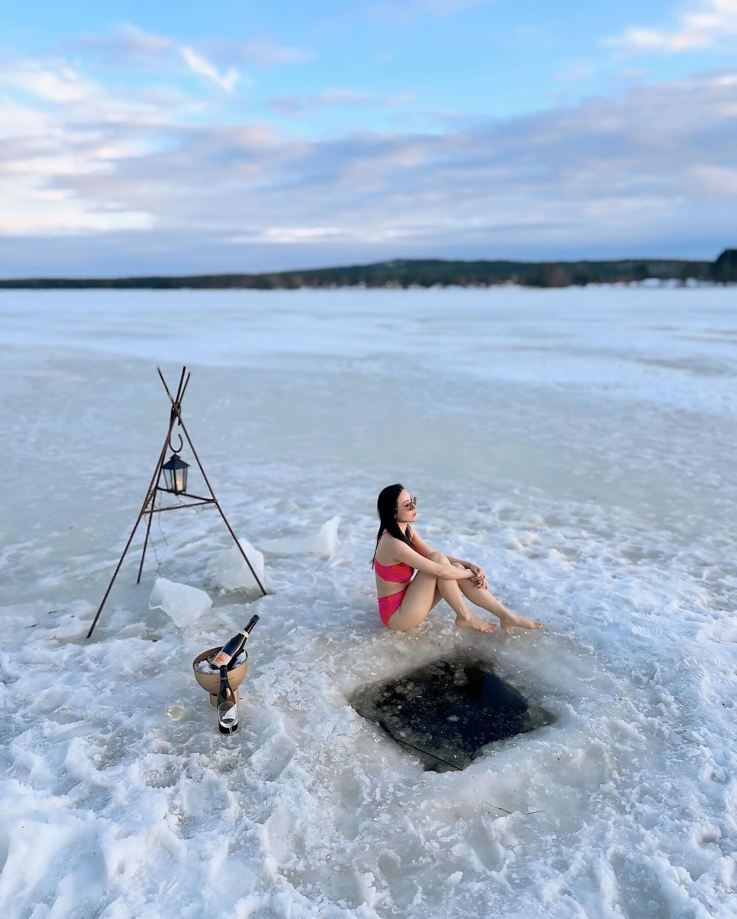 #ไม่คิดเหมือนกันว่าจะมาทำอะไรแบบนี้ ความรู้สึกตอนอยู่ในน้ำยังหนาวน้อยกว่าการยืนเหยียบหิมะ เท้าเปล่าเหยียบหิมะ ทรมานมาก (เพราะเท้าเส้นประสาทเยอะ) หลังจากนั้นเราเอาตัวลงไปในอ่างน้ำร้อนหน้าบ้าน (out door) เท้าที่เย็นจัดโดนน้ำร้อนจัด ทรมานมากมันคือความแสบอย่างบอกไม่ถูก แค่สดท้ายฝืนเอาลงไปจนได้ทั้งตัว สรุปคือ…..ฟิน!!!!!!