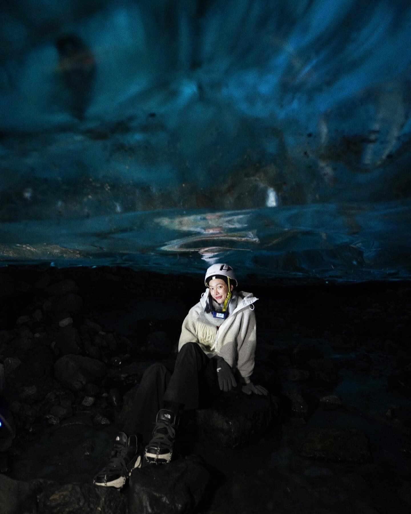 In the heart of the ice cave, amidst shimmering walls of blue, we find both adventure and a poignant reminder of earth’s fragility 🥰🌎💙 #golbalwarmingisreal #somewhereonlypitchyknow