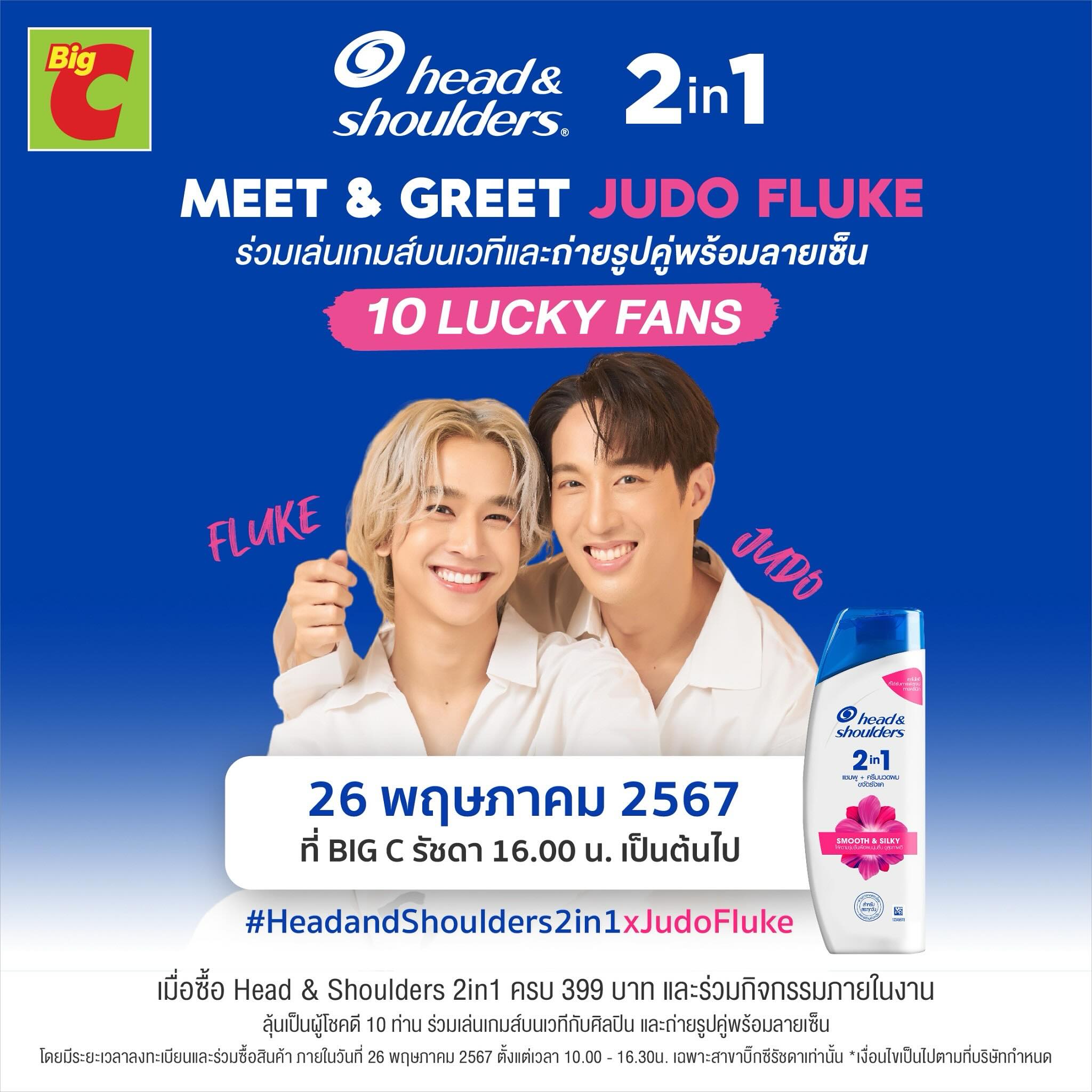 เตรียมตัวพบกับพวกเราในงาน #HeadandShoulders2in1xJudoFluke พร้อมลุ้นเป็น 10 ผู้โชคดี ที่ได้ร่วมเล่นเกมส์กับเราสองคนบนเวที และถ่ายรูปคู่พร้อมลายเซ็น