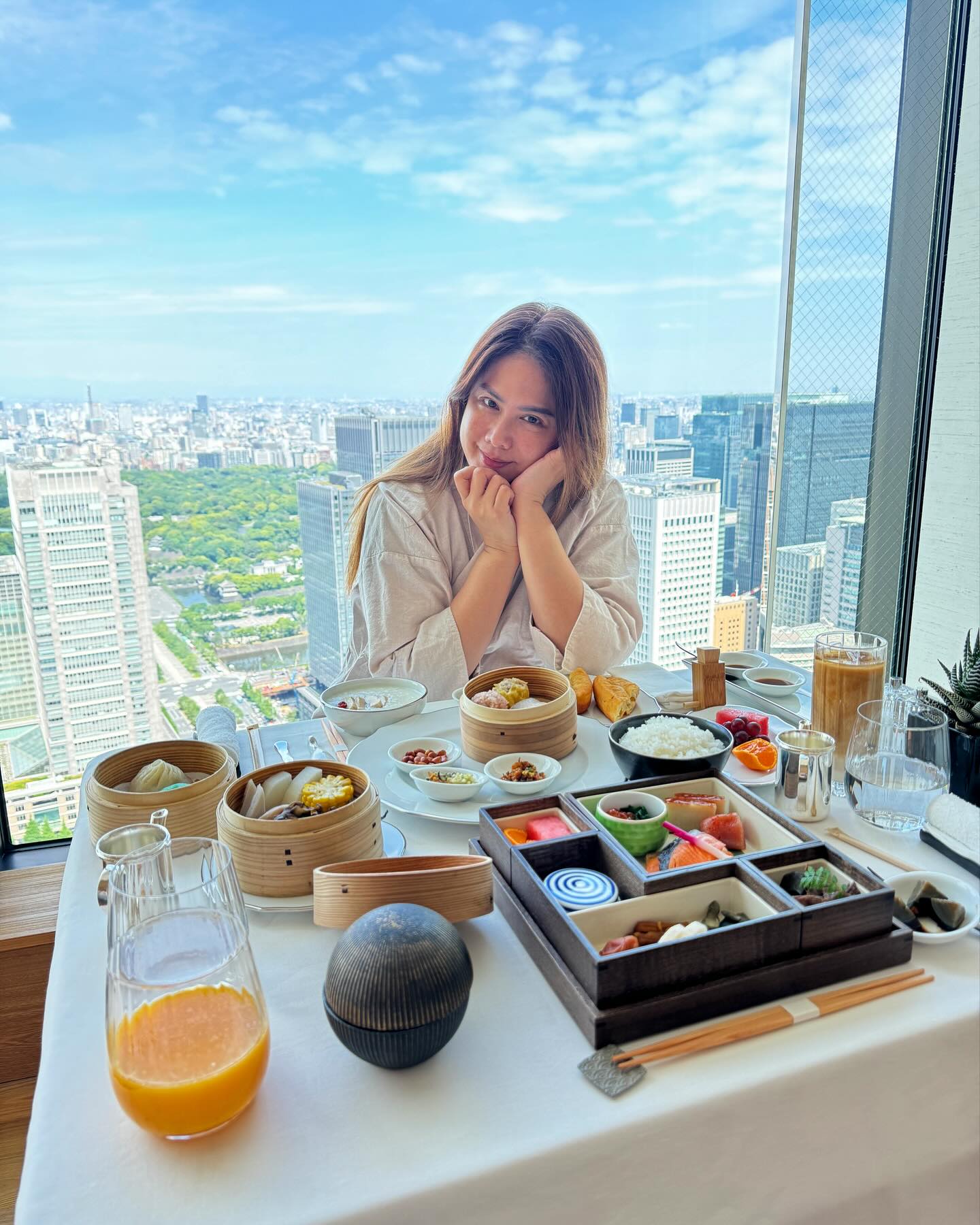 My breakfast in this morning 🍊🍇🍍🍅🥐🍳🥗🍣☕️🥛🍯