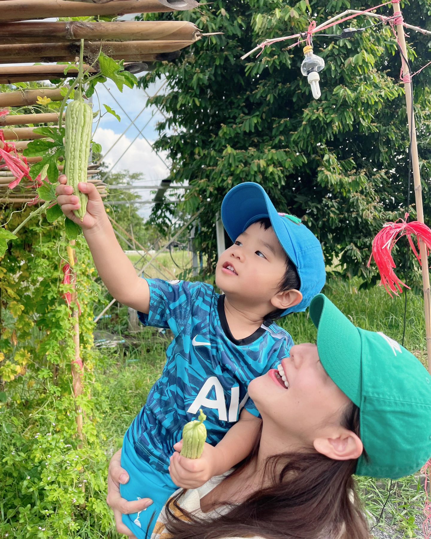 A day in our garden. ~ ณ สวนผักของพวกเราที่พ่อๆตั้งชื่อว่า #สวนทะเลและเวลา เมนูวันนี้ มะระผัดไข่จ้า 🍅🥦🥬🥕🍆🌶🌽 @talay_vela
