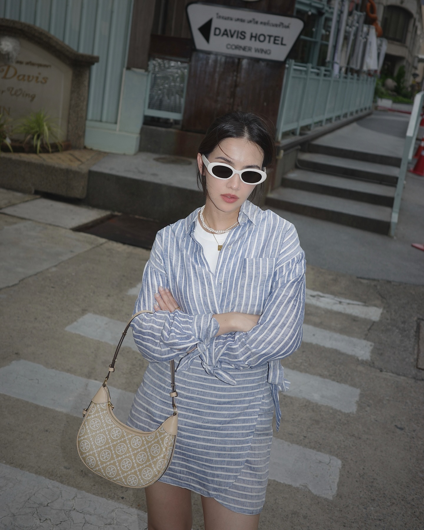 Out with my new Tory Burch T Monogram Crescent bag🍋😎💛