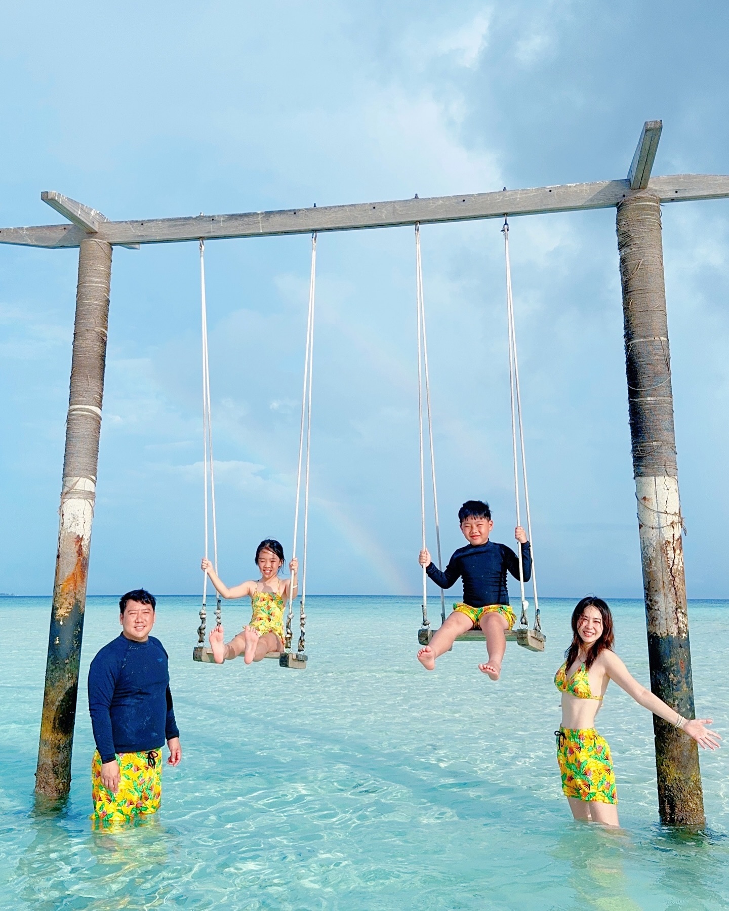 ทีมบานาน่าพริ้วจ้า😆 เราสู้มากตื่นเช้าเพราะน้ำลงรีบเดินไปชิงช้า แต่ไปถึงกับรู้ว่า ชิงช้าสูงไป😅 พ่อขึ้นไม่ไหว555 #นกที่ตื่นเช้าคือนกที่ง่วงนอน #nuipondfamily #maldives 🏝️