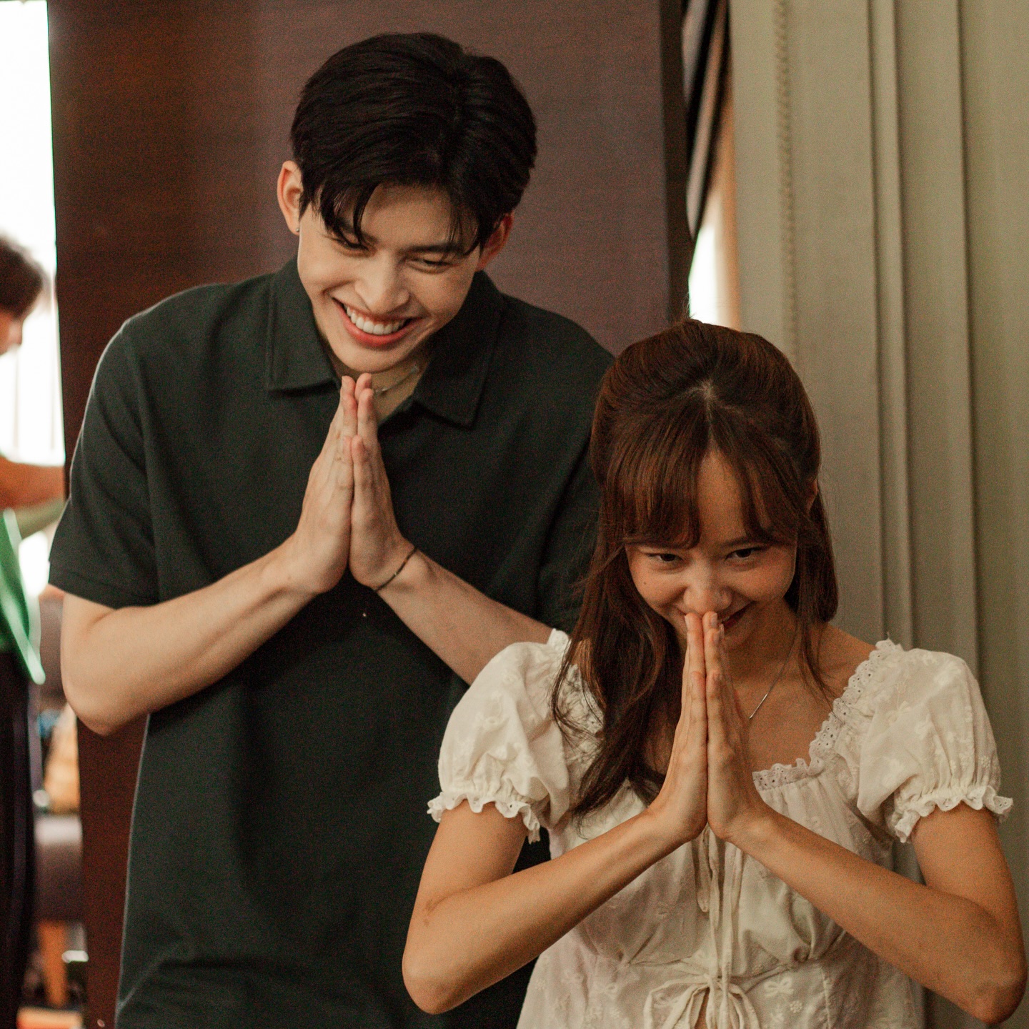 ละมีรูปเบื้องหลังที่พี่นางเอกพี่พระเอกไหว้พอดีเลยอ่ะ 5555