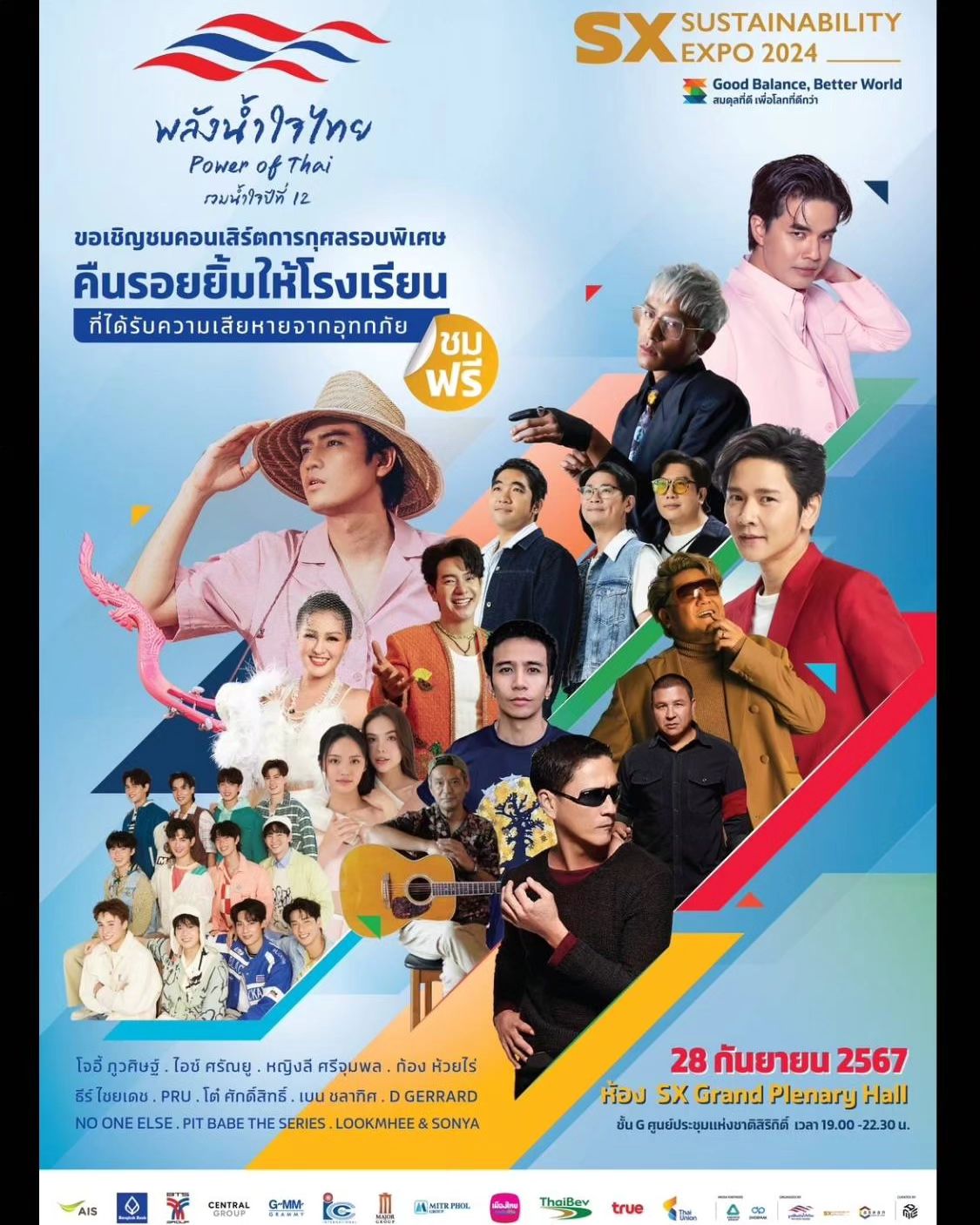 ขอเชิญชมคอนเสิร์ตการกุศล “พลังน้ำใจไทย ❤️ คืนรอยยิ้มให้โรงเรียนที่ได้รับความเสียหายจากอุทกภัย” ในงาน SUSTAINABILITY EXPO 2024 (SX2024)