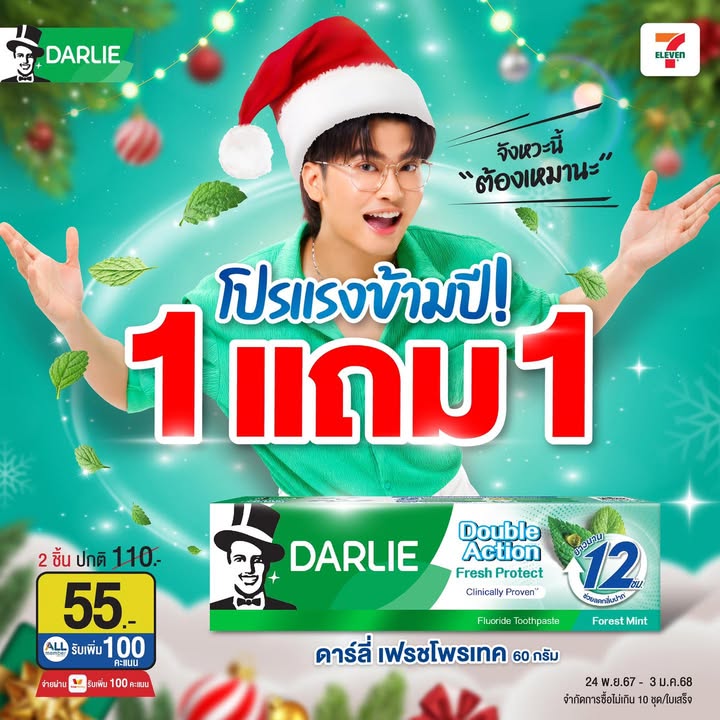 โปรแรงข้ามปีจาก Mr. Darlie นนท์ ธนนท์! ดาร์ลี่ เฟรชโพรเทค 1 แถม 1 ที่ 7-Eleven
