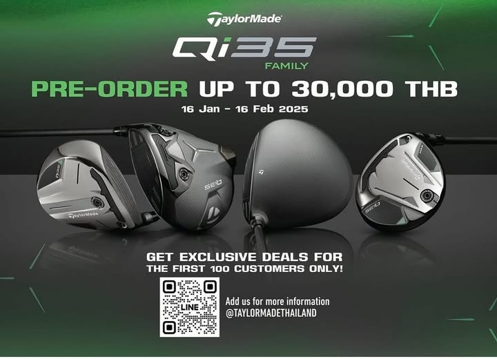 สิ้นสุดการรอคอย… Pre-Order Qi35 family (ไดร์ฟเวอร์, แฟรเวย์ หรือ ไฮบริด) ยอดตั้งแต่ 30,000 บาท ขึ้นไป รับ Exclusive Deals สำหรับแฟน TaylorMade
