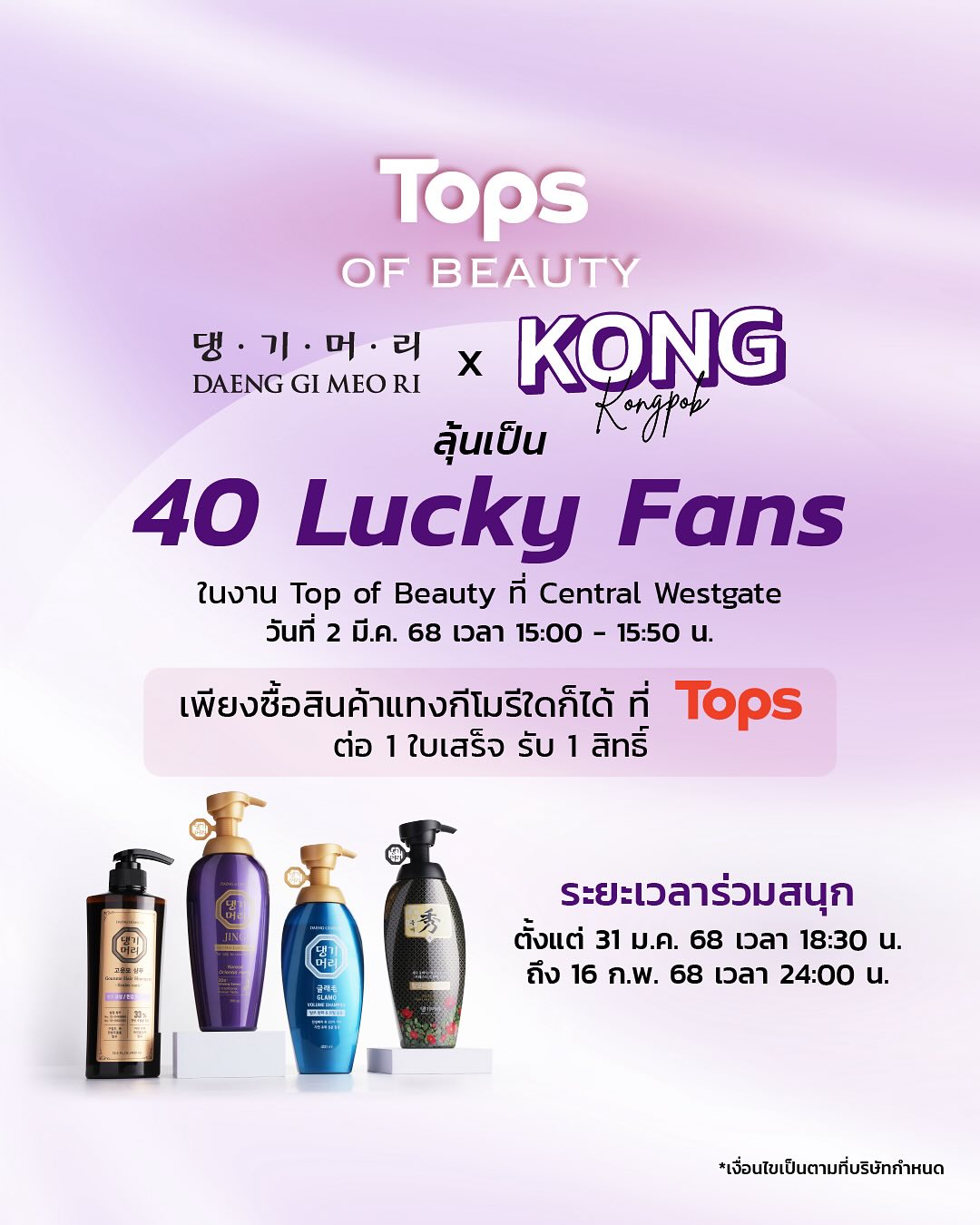 💜เตรียมตัวฟิน!! เพราะครั้งนี้ ก้อง จะมาพบกับ 40 Lucky Fans แบบใกล้ชิด! ก้องชวนคนผมสวย มาลุ้นเจอกัน!😍 บำรุงผมให้แข็งแรง สวยเงางามด้วย Daeng Gi Meo Ri