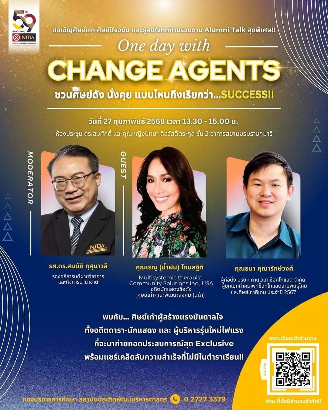 น้ำฝนเป็นศิษย์เก่าธรรมศาสตร์ และเรียนต่อปริญญาโทที่นิด้าค่ะ กลับมาบ้านเกิดทั้งทีต้องไปร่วมเสวนาที่นิด้าในโอกาสพิเศษพรุ่งนี้ 🥰