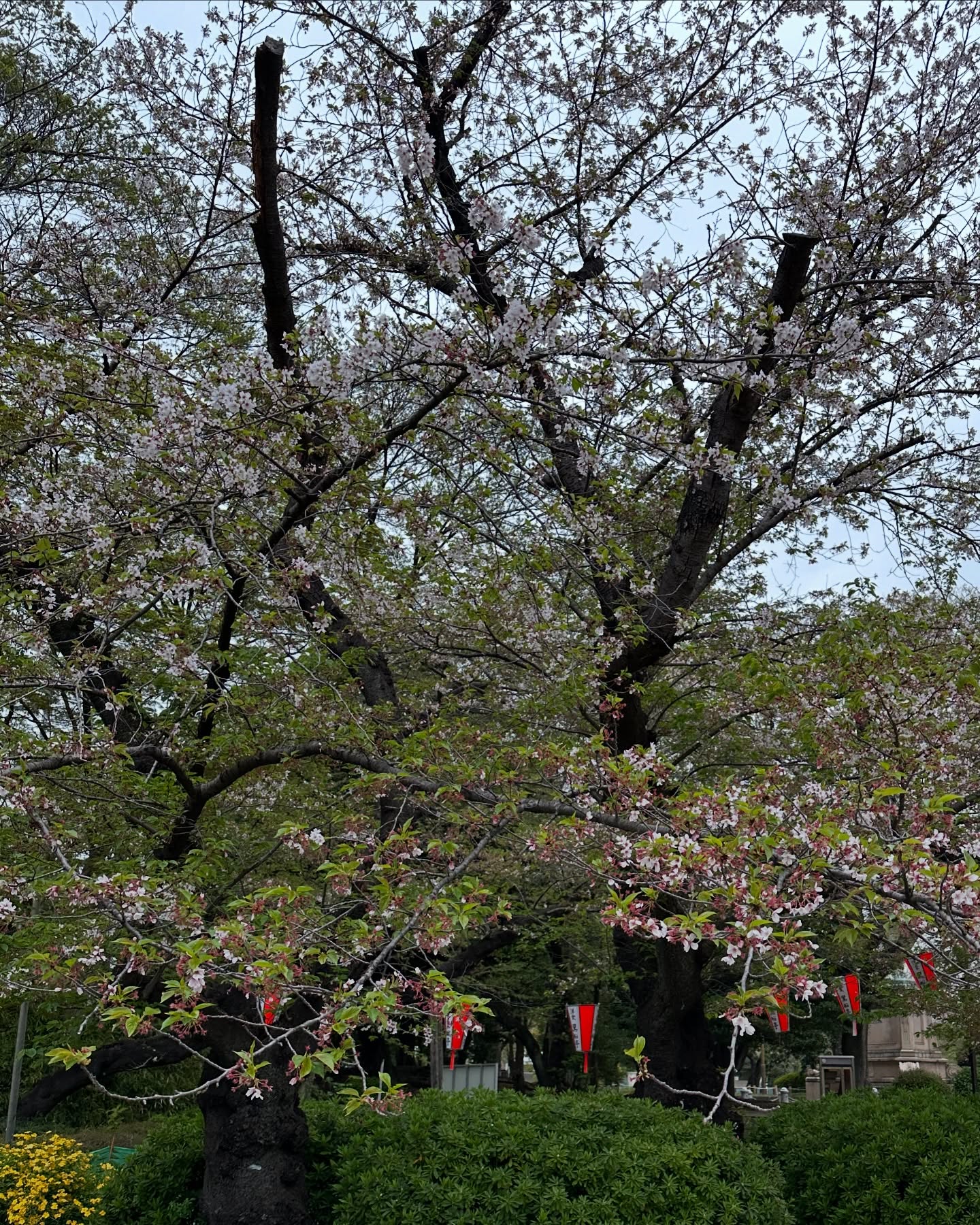วันนี้ฝนตกทั้งวัน น้องซากุระที่ Ueno ก็จะเหลือติดต้นพอกรุุบกริบ แต่น้องยังสวยอยู่มากค่ะ 🌸