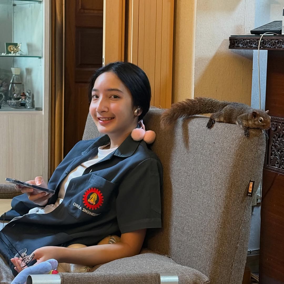นั่งเล่นกันก่อนไปเรียน…น้องเนยกับกระรอกน้อยปีใหม่🐿️ #ชีวิตคิดบวกของกวางกมลชนก❤️