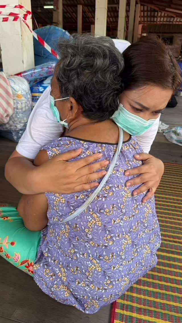 ตรงนี้มีผู้สูงอายุและผู้ป่วยอยู่ประมาณ 30 ราย บุ๋มจึงขอมอบเงินเป็นการช่วยเหลือเบื้องต้นให้กับทุกท่าน ส่วนใหญ่ยังไม่สามารถกลับเข้าไปอยู่ในบ้านของตัวเองได้ เดี๋ยวบุ๋มจะเร่งดำเนินการเคลียร์โครงและซากปลัดหักพังออกให้ค่ะ พี่น้องประชาชนและชาวบ้านที่เดือดร้อนจะได้ทยอยกลับเข้าไปฟื้นฟูซ่อมแซมบ้านเรือนตนเองได้ค่ะ