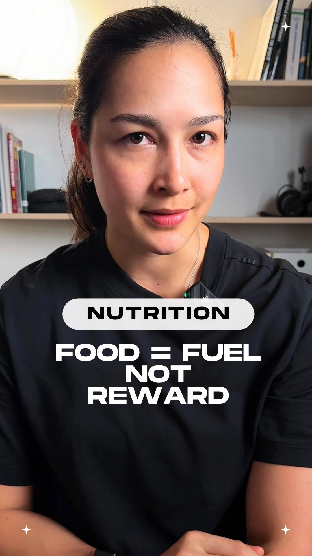 When you see food as a reward, you create this constant push-pull: Train hard → restrict → indulge → feel guilty → repeat.