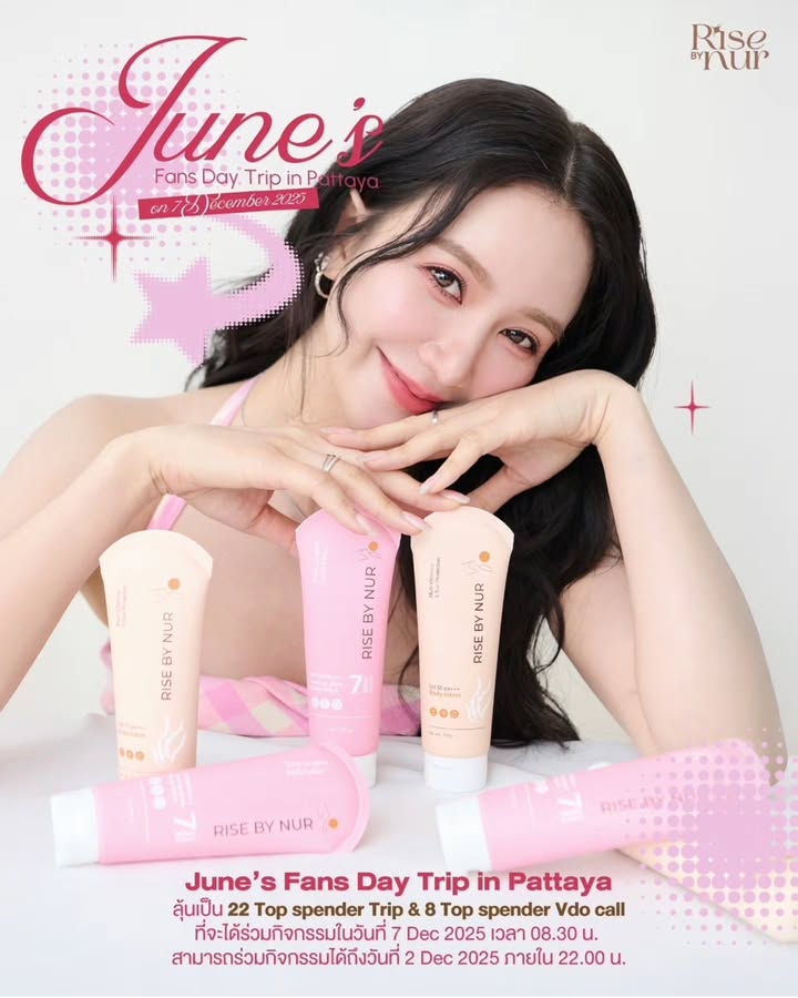 June’s Fans day Trip in Pattaya💕😉 พร้อมลุยทริปกับ June กันนะคะ ในวันที่ 7 December 2025 ตั้งแต่เวลา 08.30 น. เป็นต้นไป สะสมยอดร่วมกิจกรรมได้ถึงวันที่ 2 December 2025 ภายใน 22.00 น.🥰