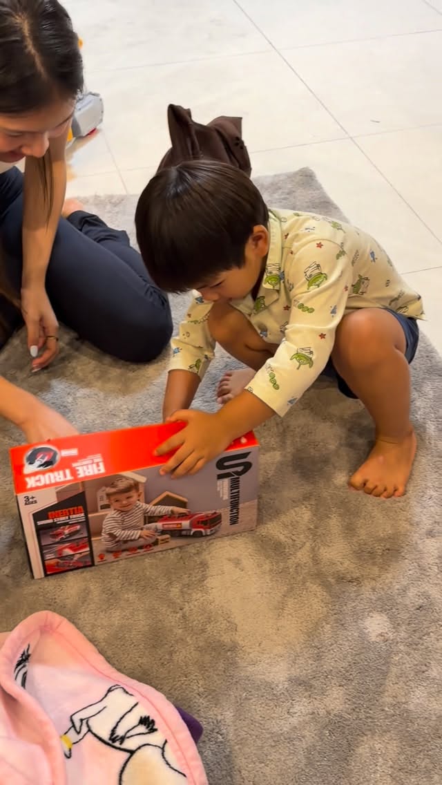 #Alex ตอนแรกยังร้องไห้ติดแม่ แต่พอพี่สาวคนโต พี่มี่ เอารถของเล่นมาให้ ลืมแม่เลยจ้ะ 😆😑😓 แถมไหว้ขอบคุณสวยมากจนพี่สาวปลื้มไม่หยุด ☺️🥰 @jenapicha